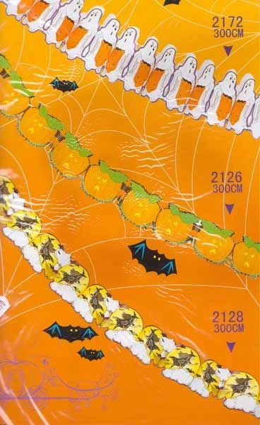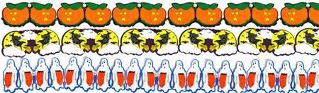Lot de 3 guirlandes halloween (fantômes,sorcières et citrouilles) de 3 mètres de long et 15 cm de haut en papier pour créer en un clin d’il une ambiance d’ Halloween ou autres thèmes….