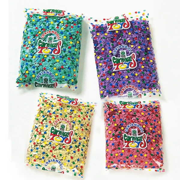 Lot de 4 paquets de confettis de 100 g chacun en coloris assortis . indispensable pour animer vos défilés du carnaval , anniversaires et toutes vos fêtes .