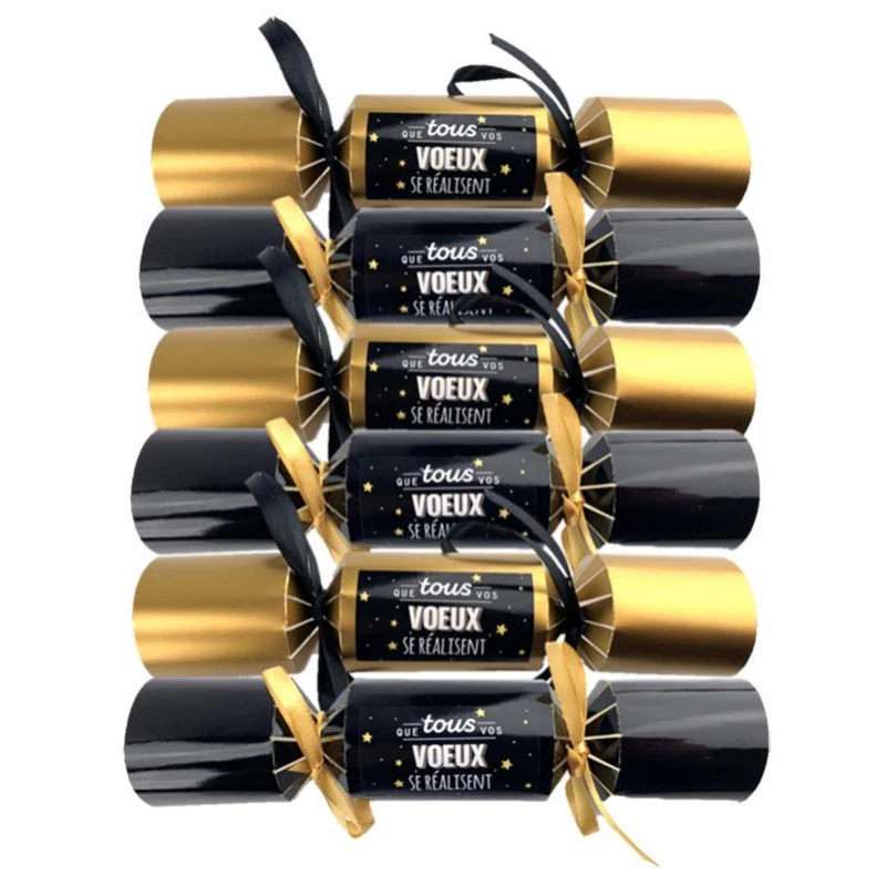 Lot de 6 crackers imprimés de messages de fin d’année : » que tous vos voeux se réalisent » .