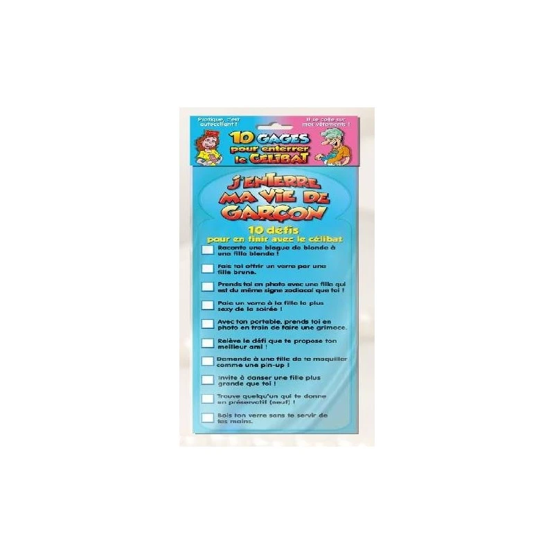 du produit « Autocollant 10 défis j’enterre ma vie de garçon »