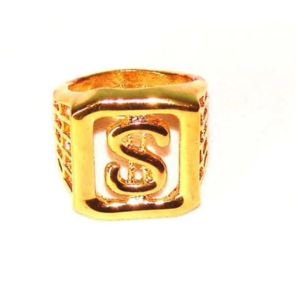Bague en métal doré avec Signe Dollars réglable . Accessoire pour Déguisement de Gangster , rapeur , disco