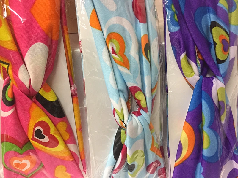 Un bandeau coloré en tissus dans l’esprit des années 60.