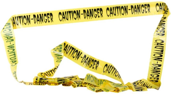 Banderole en plastique de 6 mètres de long et 6 cm de large en plastique thème » caution danger » Idéale pour des décoration sur le thème cinéma , police ..