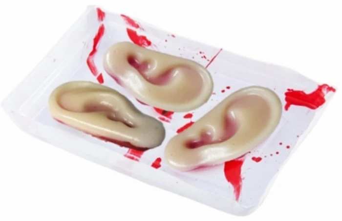 Lot de 3 mini oreilles ( 6 cm environ ) en gelatine présentées dans une barquette Accessoires parfaits pour vos décorations de table et de buffets d’halloween