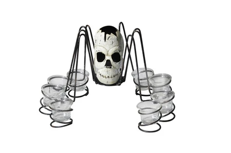 Très joli photophore en métal et verre pour 8 bougies en forme d’araignée avec une tête de mort également en métal .