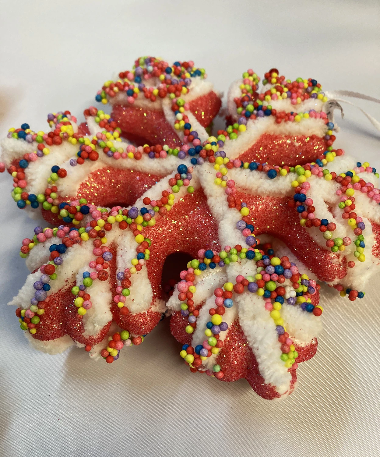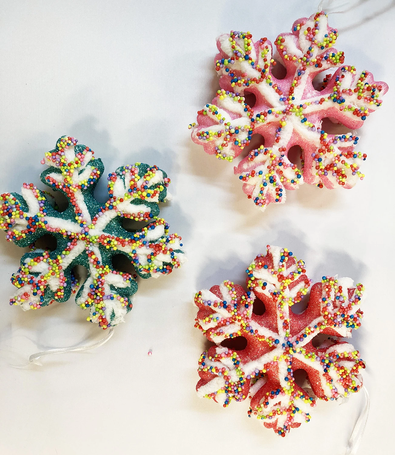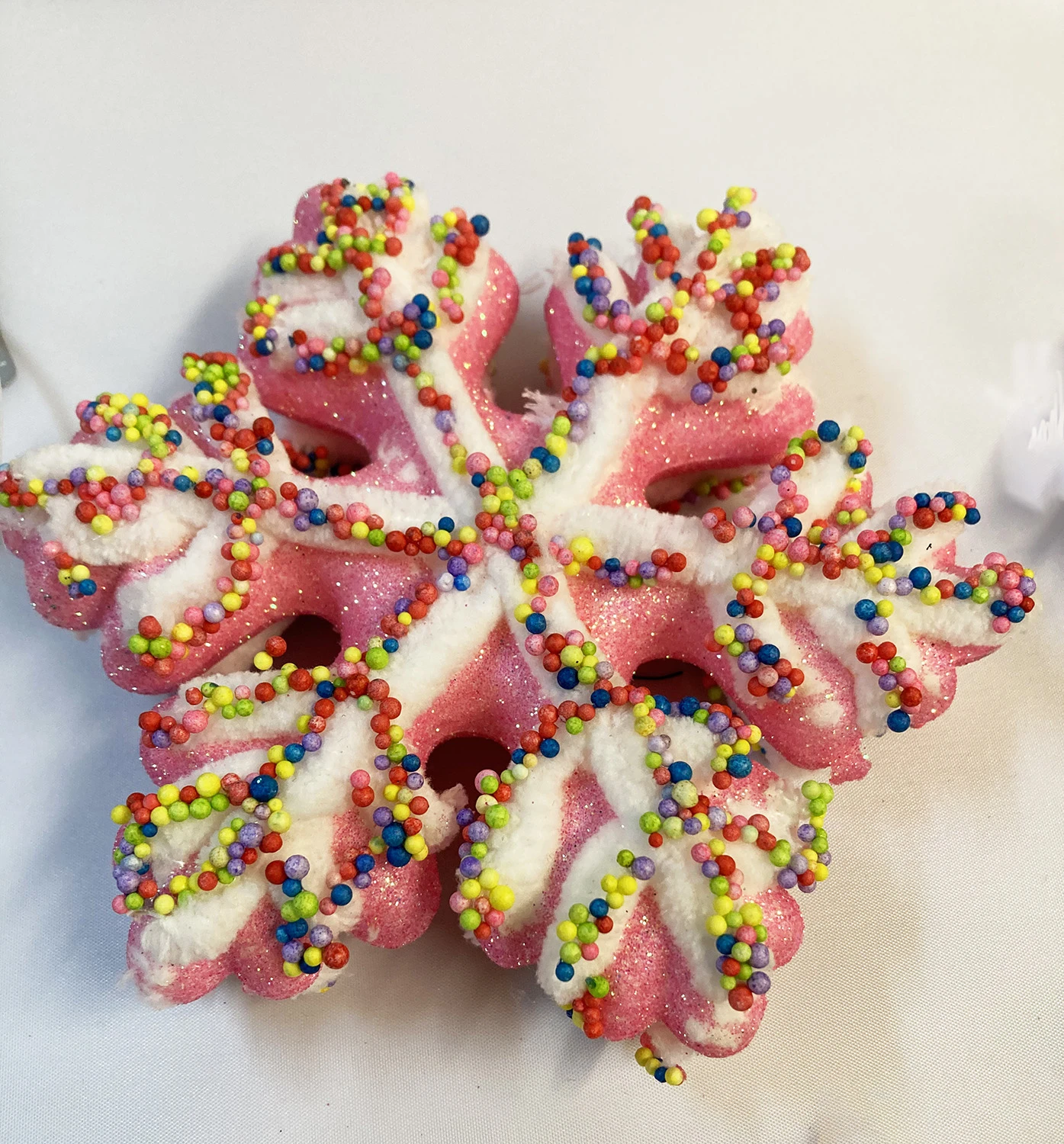 ce flocon en plystyrène aux couleurs acidulées et pailletées de 16 cm de diamètre sera parfait pour décorer votre sapin .