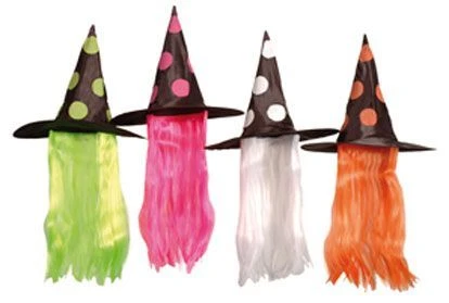 Chapeau de sorcière avec cheveux Couleurs selon arrivage Accessoire parfaitement adapté à un spectacle, à une soirée à thème sorcière, halloween…) et autres fêtes déguisées (carnaval…).