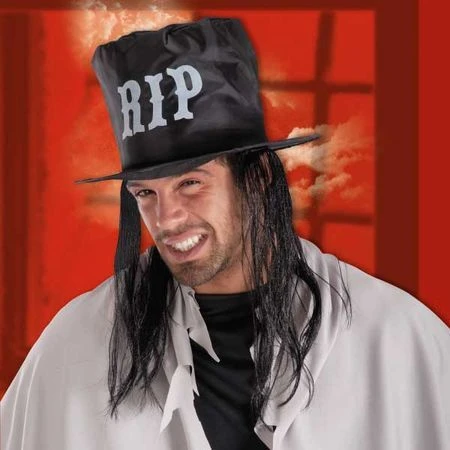 Chapeau halloween en satin plastifié avec cheveux (hauteur 16 cm)une façon originale de compléter votre déguisement de zombie ou vampire à l’occasion de fêtes sur le thème de l’épouvante ou à l’occasion d’halloween