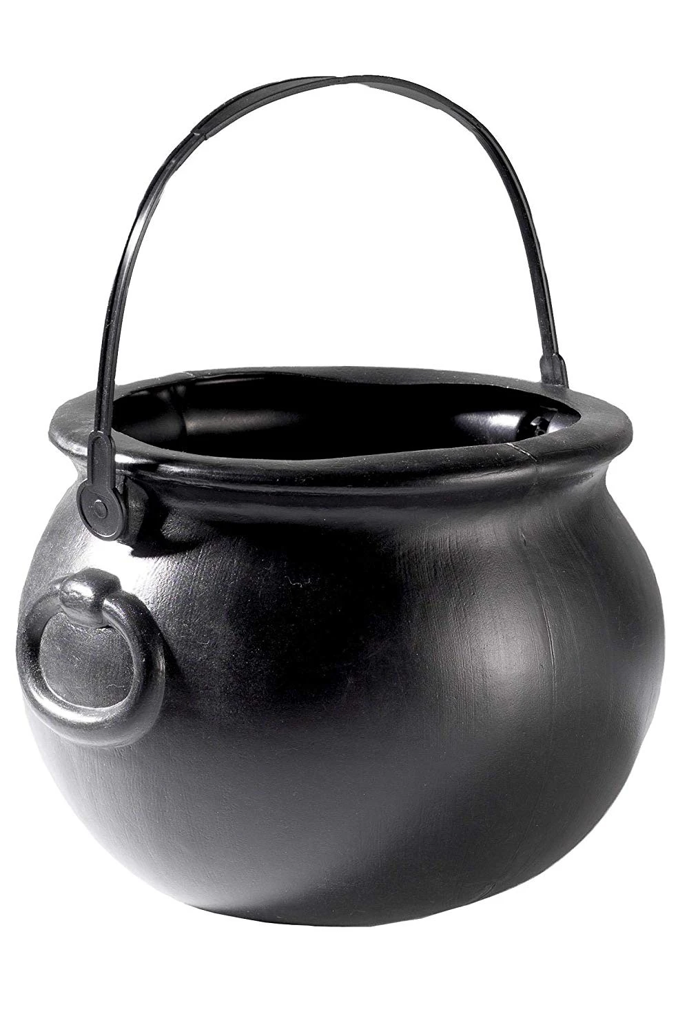 Ce chaudron rond en plastique avec anse pour servir d’accessoire ou de décor de table .