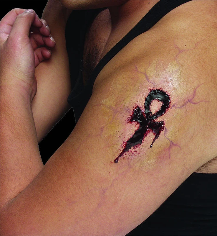 Prothèse en latex représentant un croix antique type égyptienne à coller et à maquiller Ci après comment coller la prothèse …les techniques de maquillage restent les mêmes quelque soit la prothèse..