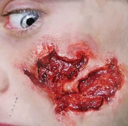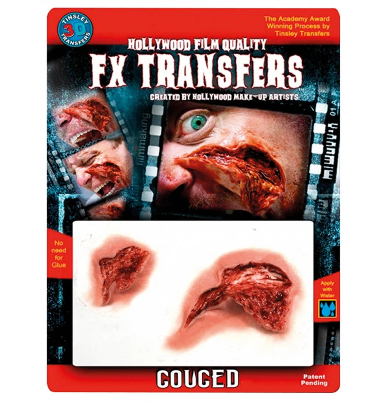 Une cicatrice très réaliste qui imite un morceau de votre peau arrachée. L’un de nos transferts les plus populaires ! Tu es seulement limité par ton imagination.