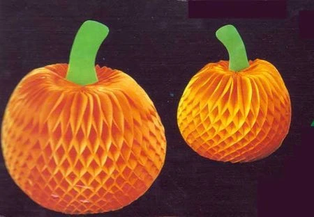 Citrouille en papier alvéolé (nid d’abeille) de 25 cm X 24 cm pour décorer tables et buffets à l’occasion de fêtes à thèmes et déguisées (halloween, épouvante…), de spectacles ou encore de carnaval.