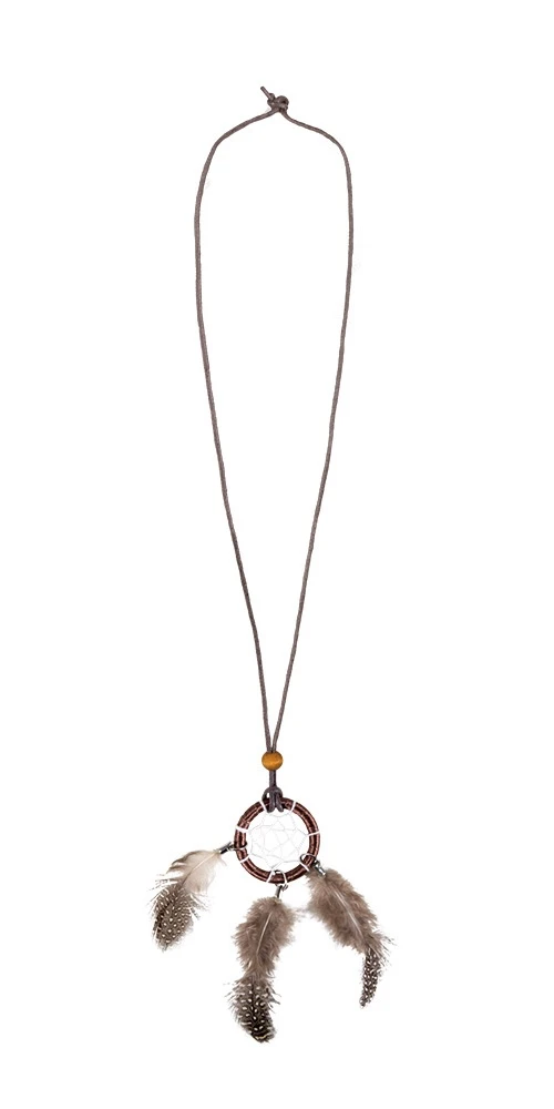 Un collier façon attrape rêves avec plumes naturelles pour accessoirisez une tenue indienne ou hippie.
