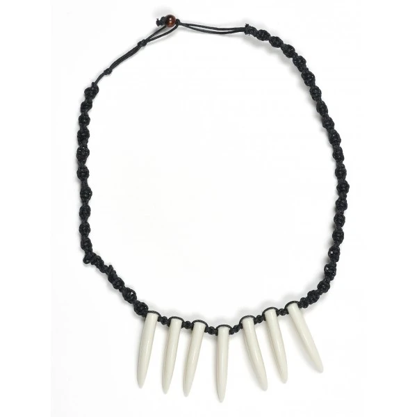 Collier avec 7 dents de 4 cm en plastique montĂ©es sur une cordeliĂšre . Taille unique Accessoire idĂ©al pour dĂ©guisement de sauvage , homme prĂ©historique , viking et beaucoup d’autres thĂšmes