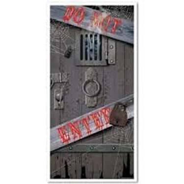 Décoration géante en plastique transparent avec en motif une vielle porte avec juda et banderole » do not enter « . De quoi bien accueillir vos invités. Décoration de grande taille: hauteur 165 cm et 85 cm de largeur. Décoration à suspendre, à accrocher à un mur ou à mettre au sol pour une fête sur le thème de l’épouvante ou d’halloween.