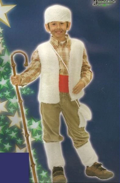 Accessoire en fourrure pur une tenue de berger comprenant: un gilet un chapeau une paire de guêtres un sac une ceinture rouge Un déguisement de berger parfait pour les crèches vivantes et les fêtes de Noel Autres accessoires non fournis