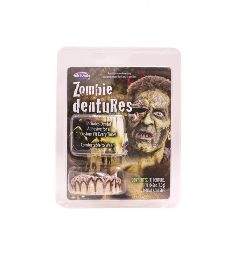 Dentier zombie adulte en rĂ©sine . IdĂ©al pour complĂ©ter votre dĂ©guisement lors de la zombie walk. Effet garanti, confortable,il est livrĂ© avec une pĂąte adhĂ©sive permettant une excellente tenue et un mode d’emploi