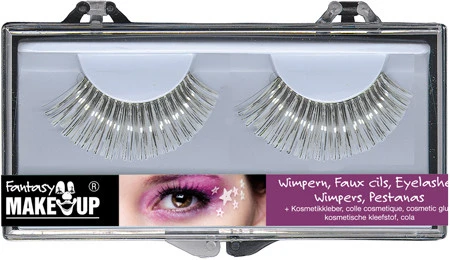 Paire de faux cils argentés et blancs livrés avec un tube de colle