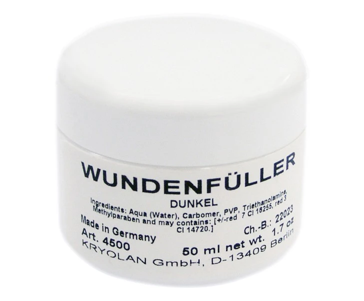 Préparation à effet de sang gel pour simuler des blessures réalistes. C’est un gel de remplissage pour simuler des plaies profondes . Peur être mélangé avec le sang transparent pour un effet fraicheur de la blessure . Pot de 50ml