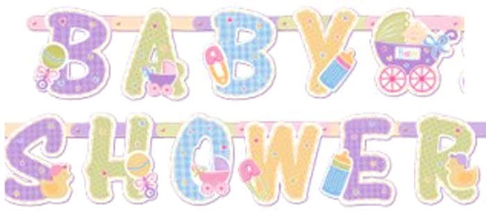Guirlande articulée en carton impression 1 face Baby shower de 210 cm X 21 cm environ .