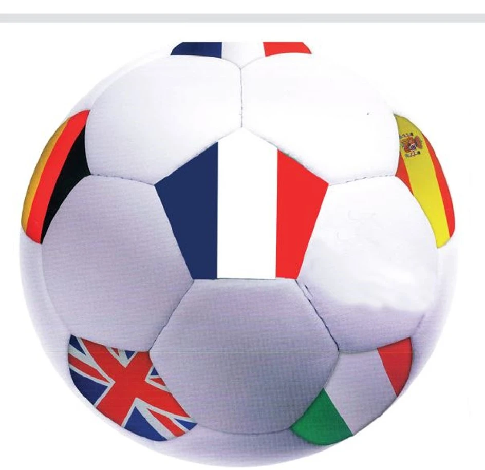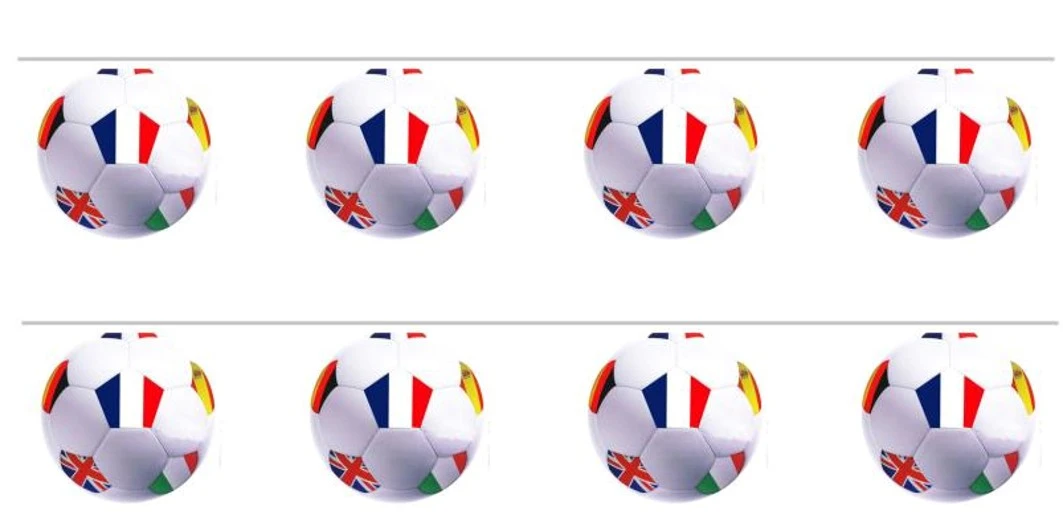 cette guirlande de 5 mètres est composé de 10 ballons de football en carton de 30 cm de diamètre imprimés sur les 2 faces .