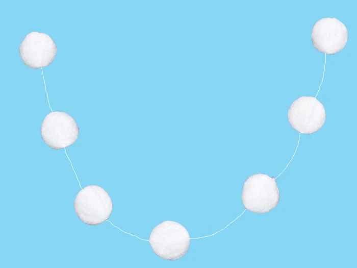 Guirlande de 180 cm avec 30 boules de ouate de 4cm de diamètre environ Décor idéal pour les anniversaires sur le thème de la rein des neiges ou les fêtes de Noel