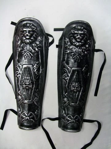 Paire de jambières en plastique rigide .Accessoire idéal pour compléter un déguisement de romain ou de gladiateur pour un spectacle (peplum, Jules César, Rome…), une soirée ou fête déguisée sur le thème de la Rome antique.