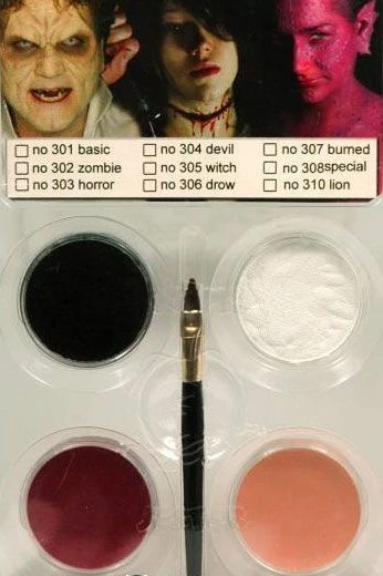 Maquillage de professionnel destiné à tous ayant une grande qualité, non toxique et particulièrement formulé pour être adapté aux enfants et aux peaux les plus sensibles, fait à base d’eau et donc facile à enlever. Palette de 4 pots de maquillage à l´eau de 4 gr et 1 pinceau. ( blanc, noir, chair , bordeaux ). Permet tous les maquillage de bases pour vampire, zombie et autres personnages gores et en particulier les hématomes . Notice d’utilisation Appliquer le maquillage avec un pinceau ou une éponge humide. Démaquiller à l’eau et au savon. Ne convient pas aux enfants de moins de 3 ans. Fabriqué en Allemagne. Tous les maquillages sont fabriqués grâce à des ingrédients entièrement conformes aux normes de l’Union Européenne, les normes FDA (Administration Centrale, Pharmacologie, Toxicologie et Technologie Agro-alimentaire) concernant le jouet, ainsi que le règlement des normes de cosmétique. A utiliser dans les 18 mois suivant l’ouverture. Parfait pour vous maquillez comme un professionnel lors de soirées à thème entre amis ou pour carnaval.