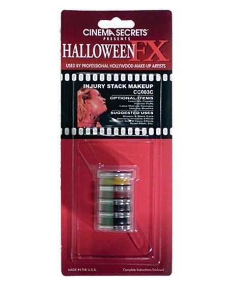Kit de 4 godets(noir,ocre,rouge,violine) aquacolor pour réaliser hématomes et blessures en tous genres ou pour changer facilement son apparence et compléter, par exemple, un déguisement (sorcière, monstre. ) à l’occasion de fêtes à thèmes (halloween, carnaval. ) ou pour un spectacle.