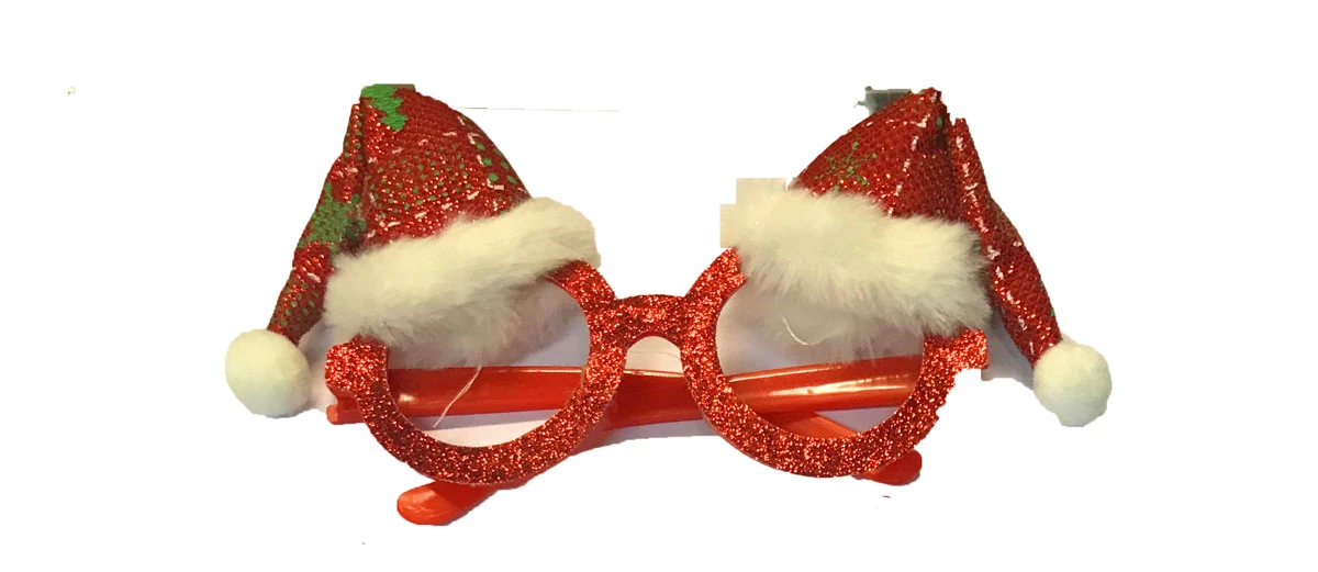 Lunettes de Noel en plastique pailleté rouge sans verre sur le thème de Noel La partie haute est décorée de bonnets de Noel Taille unique Un accessoire indispensable pour participer à l’esprit de Noel