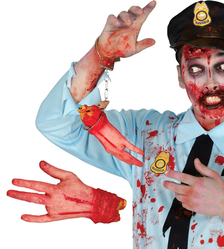Main coupée ensanglantée en latex de 28 cm environ . une décoration gore idéale pour les fêtes d’halloween