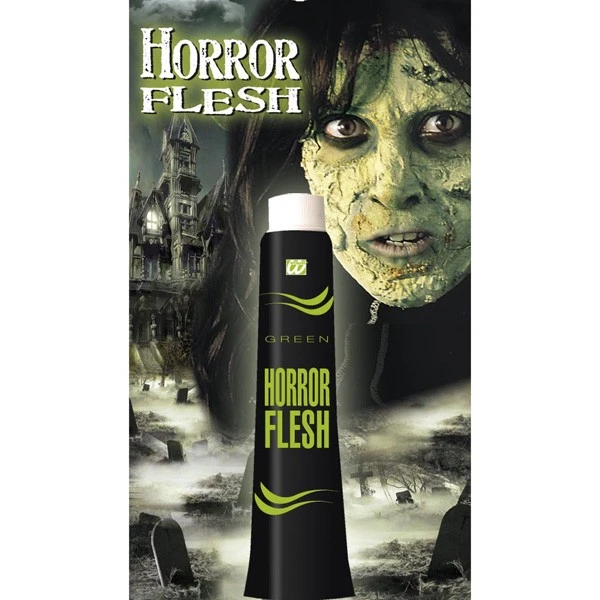 Crème de maquillage à base de latex reproduisant un effet lèpre ( la texture se craquelle en séchant ) pour vous permettre de donner libre cours à votre imagination et finaliser votre déguisement de zombie , monstre . Maquillage professionnel s’applique à la main, au pinceau ou à l’éponge et se nettoie à l’eau. Tube de 28ML Couleur verte