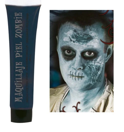 Tube de maquillage à l’eau , verdâtre de 28 G environ pour la peau .Idéal pour larges surfaces, les plaies, la peau rongée et maquillage zombies S’enlève à l’eau et au savon. Conservation 1 mois après ouverture. Instructions au dos de l’emballage.existe en vert et aubergineNe convient pas aux enfants de moins de 14 ans. Peut tâcher les tissus.