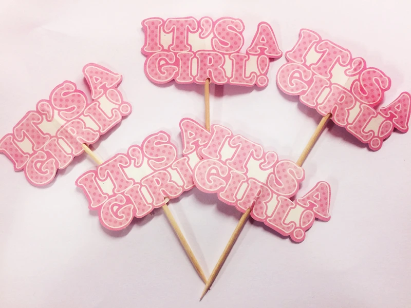Lot de 20 mini piques en bois décorées sur le thème fille » it’s a girl » Parfait pour finaliser la décoration de vos cup cake , gâteaux , muffin lors des baby shower , baptême , anniversaire
