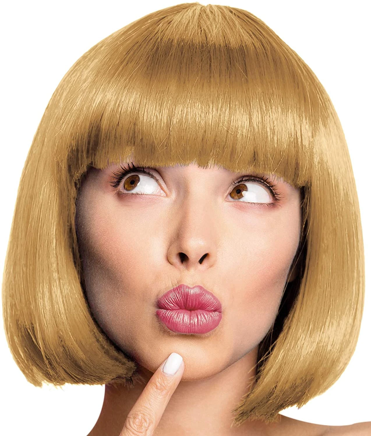 Une perruque au carré façon charleston blond foncé de très belle qualité qui peut compléter un déguisement disco,cabaret, années 70 ou encore charleston et années folles, pour carnaval, et des soirées à thème ou fêtes déguisées réussies