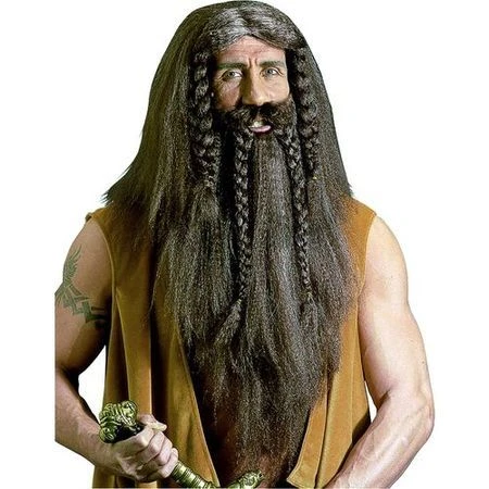 Kit Perruque et barbe . taille unique Calot Ă©lastiquĂ© convient Ă toutes les tĂȘtes Barbe sĂ©parĂ©e avec maintien Ă©lastique Un accessoire idĂ©al pour finaliser un dĂ©guisement de barbare , troll , viking ou homme des caver,es