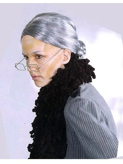 Une perruque grise pour prendre plusieurs années et ressembler à une grand mère !