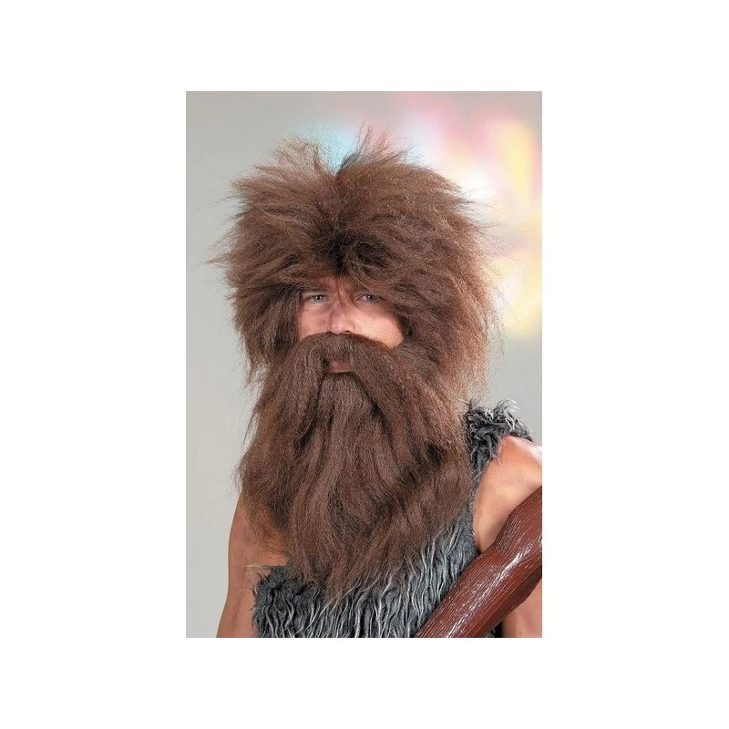 Perruque et barbe pour adulte Barbe séparée , la perruque est montée sur un filet élastiqué taille unique Accessoire parfait pour finalise vos déguisements préhistorique