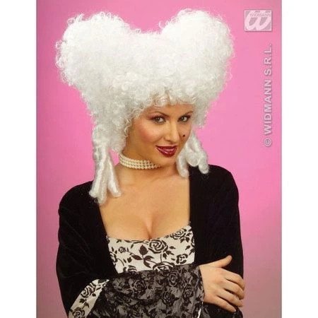 PERRUQUE BLANCHE BAROQUE Perruque baroque très stylée, tout en volume. Perruque de grande qualité, idéale pour compléter un déguisement de carnaval ou un costume d’époque (marquise, cantatrice…). Perruque parfaitement adaptée à des soirées costumées et déguisées à thèmes ou pour un spectacle.