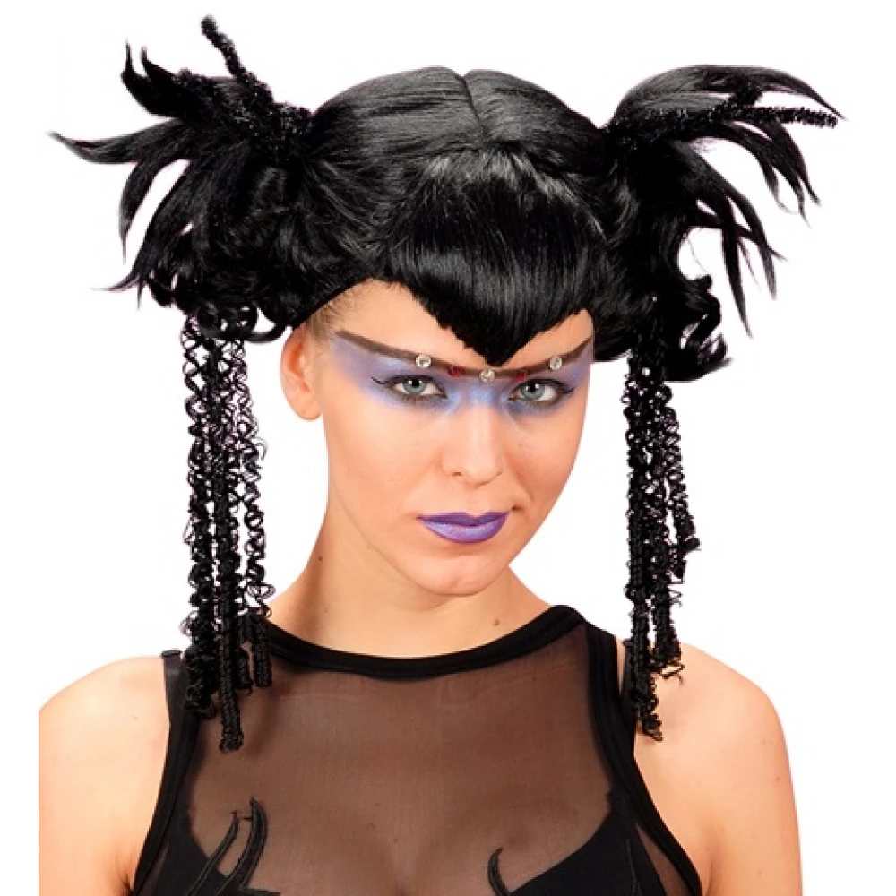 une perruque manga noire originale pour accessoiriser les déguisements gothiques , punk , manga ou cosplay ou chinois