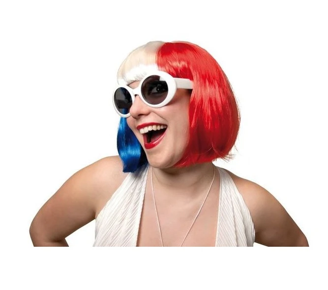 Perruque tricolore bleu, blanc, rouge, pour adulte.