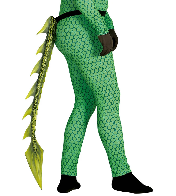 Queue de dragon verte en latex de 100 Cm , maintien par élastique autour de la taille .