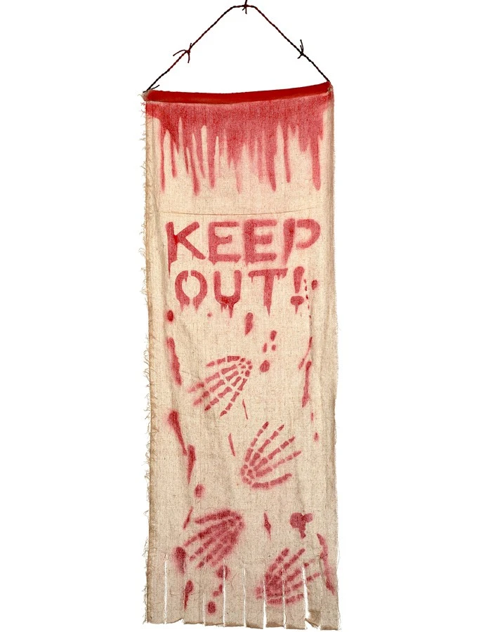 Ce décor en toile de jute de 120 cm x 40 cm est imprimé de motifs sanguinolents .