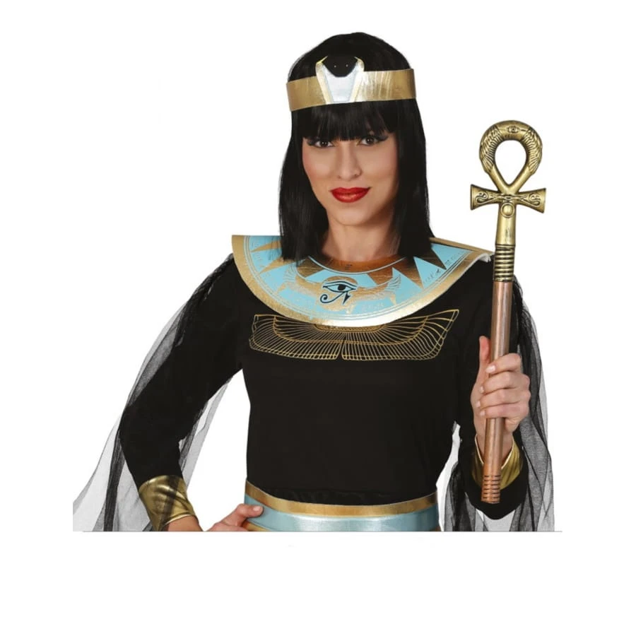 Sceptre égyptien en plastique façon métal vieil or de 50 cm de long .