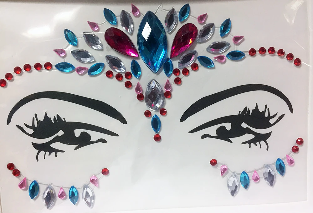 Bijou autocollant pour le visage et le corps composé de strass formant des motifs .