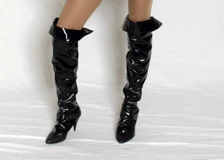 Surbottes ou cuissarde en vinyle noir sur www.netbootic.com . taille unique Accessoire idéal pour tenue rock , punk , sexy halloween