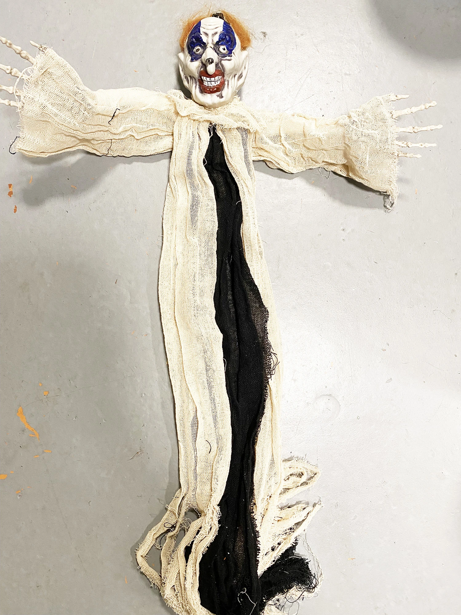 Cette décoration d’ halloween de 100 cm représentant un clown maléfique