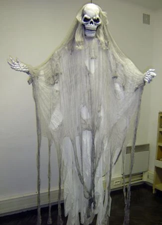 Suspension de 180 cm de haut représentant un squelette ( tete et mains latex )