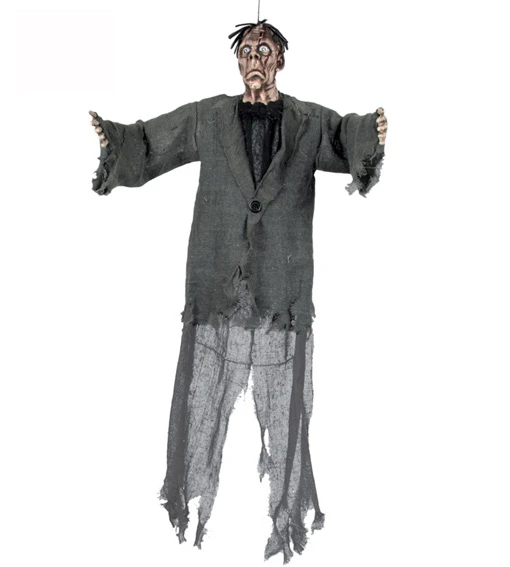 Un zombie de 90 cm de haut à suspendre Tête et mains en plastique , corps en tissu Une suspension idéale pour vos décor d’halloween