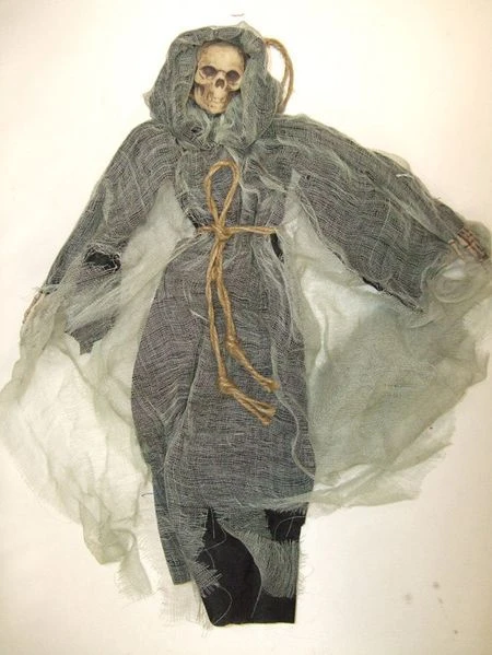 Suspension squelette en tissu et polystyrène de 50 cm de haut pour une décoration de salles ou de table réussie, à l’occasion de fêtes à thèmes ou de Halloween.